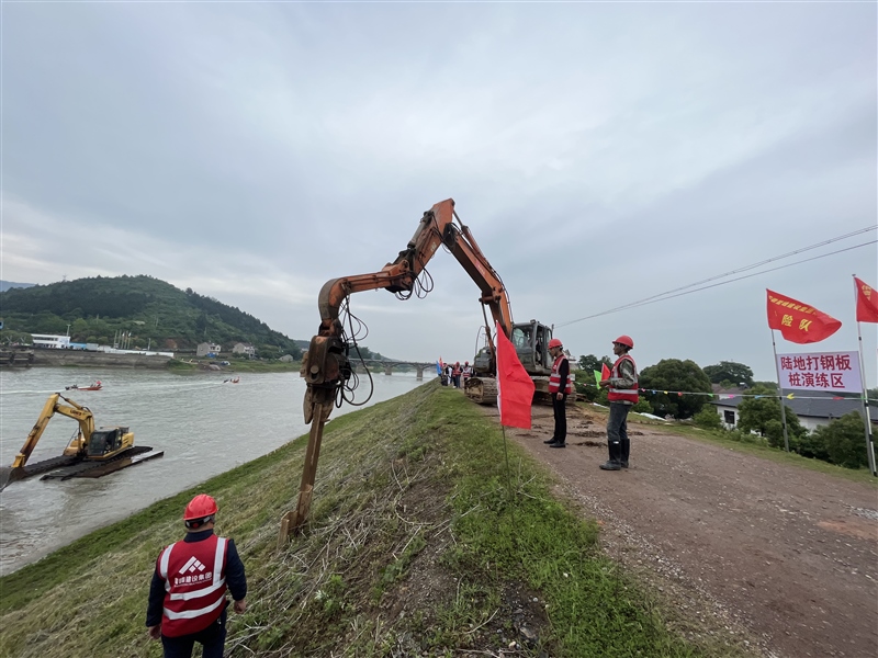 5月11日上午,根據(jù)市、區(qū)防指的統(tǒng)一部署,宣城市暨宣州區(qū)2023年防汛搶險實戰(zhàn)演練活動在朱橋鄉(xiāng)北山港口舉行,共27支抗洪搶險隊參與演練活動。演練內(nèi)容包括打樁、加子埂、反濾圍井、開溝導(dǎo)滲、水下?lián)岆U、水上編隊航行和人員搜救轉(zhuǎn)移演練。安徽鰲峰建設(shè)集團有限公司搶險隊共10人參加陸地鋼板樁演練。
