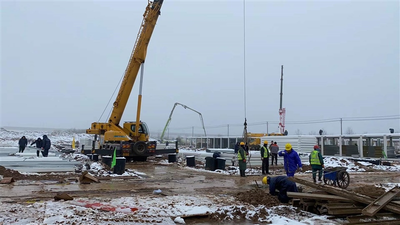 2月8日,新年的第一場暴雪終于遏制住怒吼,各搶建班組全力加速推進(jìn)準(zhǔn)備區(qū)折疊房和隔離區(qū)打包房的安裝,室內(nèi)淋浴房、水電及室外電力電纜井砌筑等多個(gè)作業(yè)面施工全面展開,現(xiàn)場掀起節(jié)后施工新一輪大干熱潮。