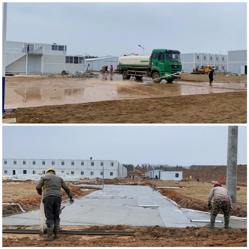 項(xiàng)目建設(shè)現(xiàn)已進(jìn)入最后沖刺階段,各參建單位風(fēng)雨同舟、日夜兼程,全面加快施工收尾進(jìn)度。截至目前,板房吊裝工作全部完成,內(nèi)部裝飾裝修施工、空調(diào)、淋浴房、熱水器安裝等工作緊張進(jìn)行,周邊綠化、室外路燈、圍欄等都在有序施工。在隔離點(diǎn)項(xiàng)目建設(shè)上,區(qū)國(guó)資集團(tuán)始終堅(jiān)持快打猛攻、速戰(zhàn)速?zèng)Q,一鼓作氣確保在本月底之前全面建成交付。