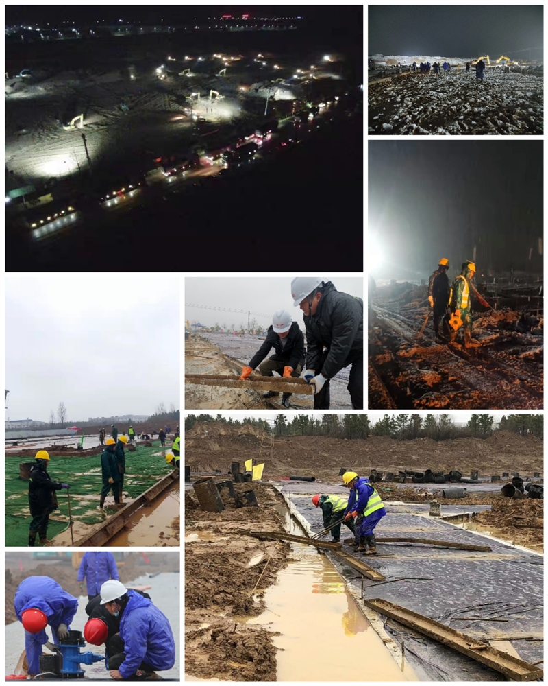 自1月21日宣州區(qū)疫情防控指揮部緊急部署由區(qū)國資集團承建宣州區(qū)疫情防控臨時隔離點項目始,集團即刻投入到緊張有序的搶建工作中。冬季施工難度相當(dāng)大,項目更是遭遇持續(xù)降雨、二次大雪和連續(xù)降溫,氣候條件十分不利。然而國資集團不畏困難,不失時機,抓住一切機會搶工程,不論白天、黑夜、刮風(fēng)還是下雨,始終緊抓建設(shè)不放松,克服持續(xù)陰雨天氣,大干6個晝夜,突擊144小時連續(xù)作業(yè),完成25000平方米混凝土澆筑。更是在春節(jié)期間不停工,不斷檔,頂著暴風(fēng)雪、克服春運帶來的采購、人工、交通等一切不利因素,在元宵節(jié)前完成準(zhǔn)備區(qū)188套、隔離區(qū)744套打包房吊裝工作。